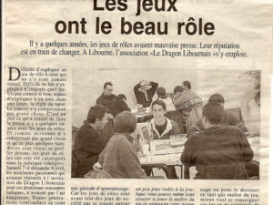 L’association connut des hauts et des bas en termes de fréquentations et de déménagements du local : le P.R.J fut rasé et les Dragons s’exilèrent alors dans les mètres carrés sociaux de la Résidence Garderose puis emménagèrent au Mille-Club des Charruauds qui fut rénovés chassant le Dragon Libournais vers la salle de la Bienvenue avant de rejoindre ses pénates Mille-Clubesques. Et, surtout, le Dragon Libournais a survécu aux différentes vagues de la peste Covid19 en s’adaptant au jeu de rôles en ligne grâce à ROLL20 et DISCORD ! Plus de vingt ans d’existence, c’est peu pour un Dragon mais notre échelle humaine c’est des milliers de parties de jeux de rôles, de Magic, de jeux de plateaux, de wargames et des centaines d’heures de Murders et de Grandeurs Natures avec des dizaines de partenaires et des « amis de Conv’ » un peu partout en Aquitaine. Voilà, c’est une petite histoire du Dragon Libournais, riche de centaines d’autres anecdotes ludiques. Vous voulez en savoir plus? Alors venez nous voir :